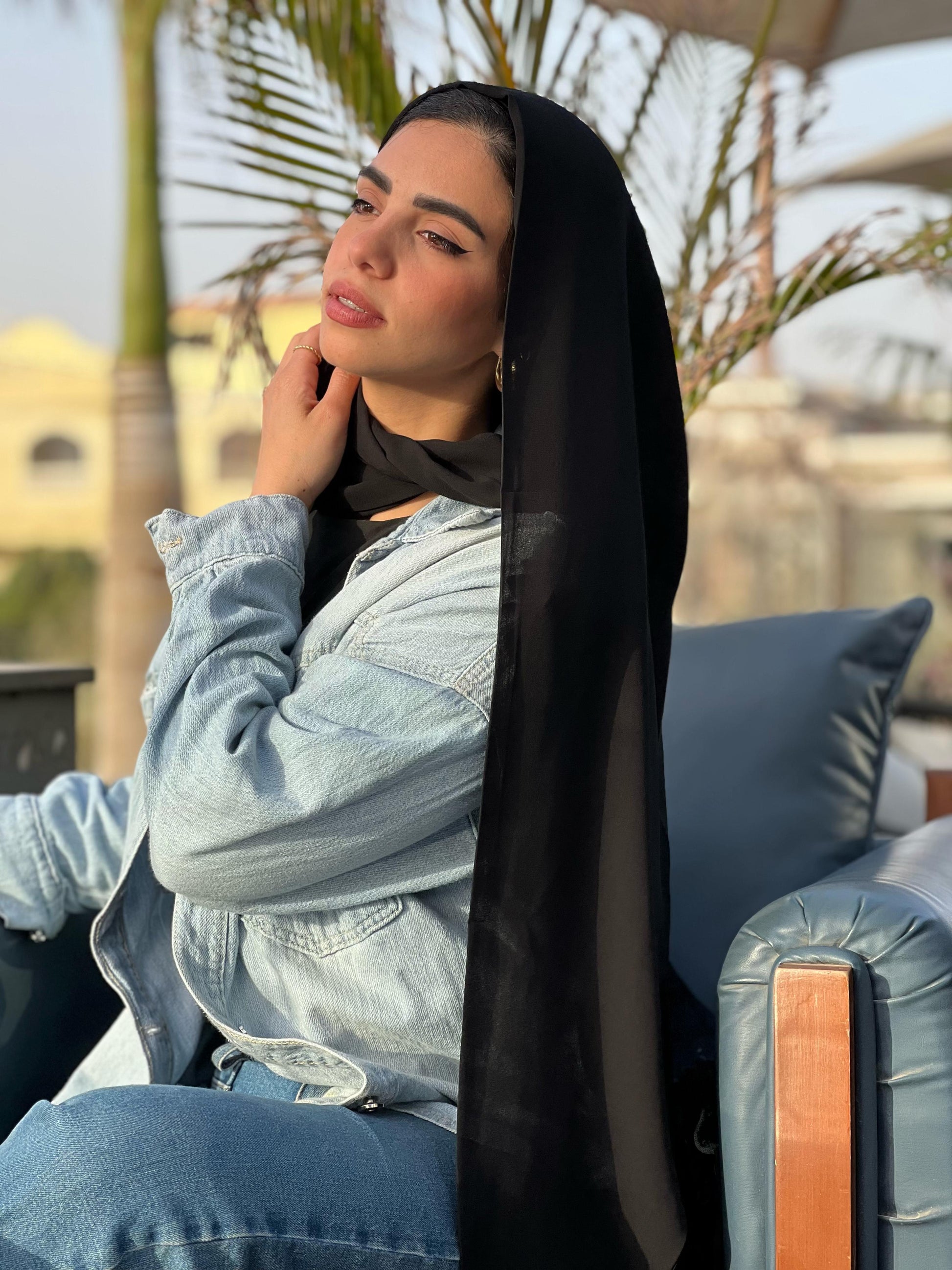 Turkish Double Layer Chiffon Scarf Black